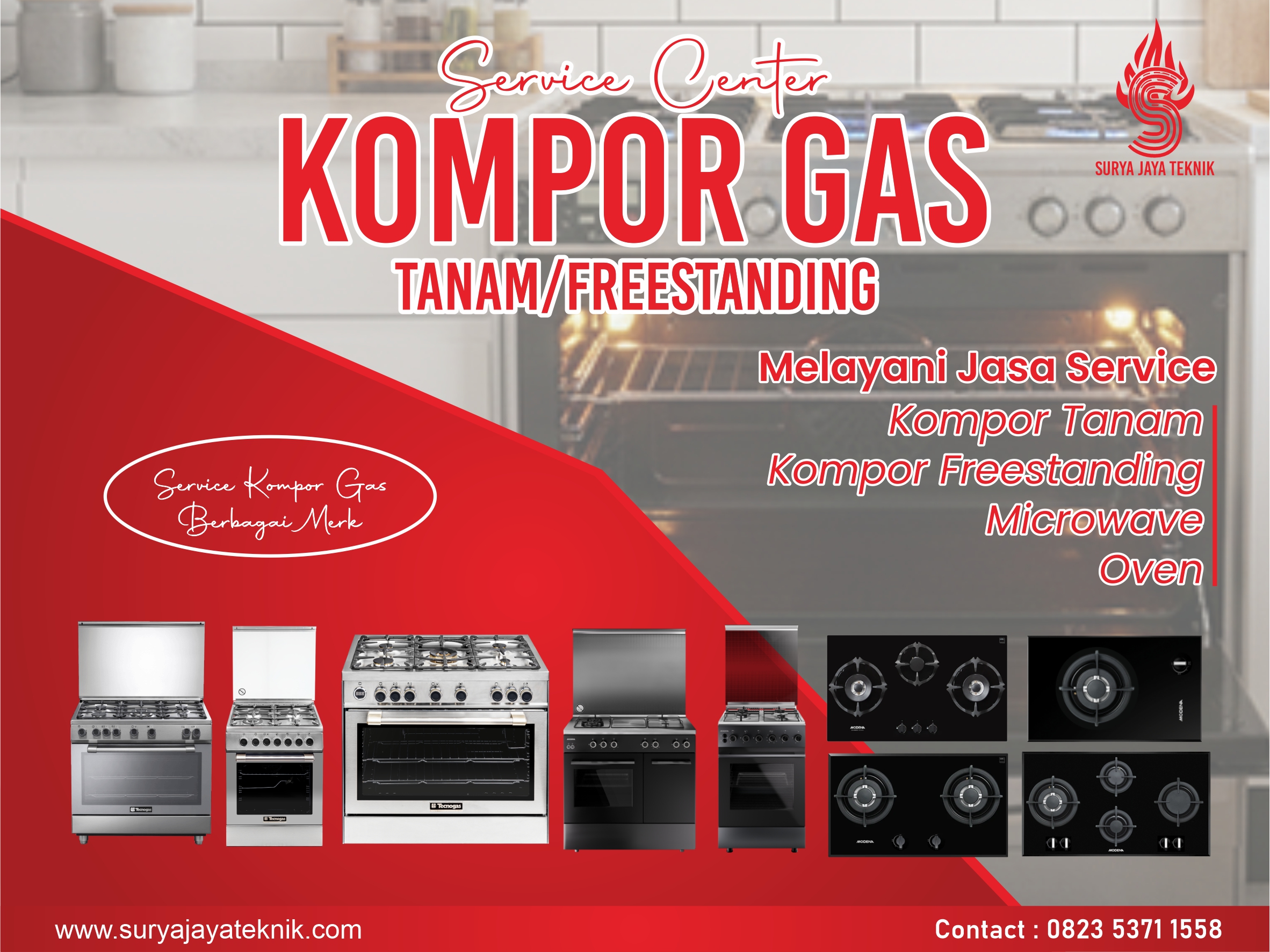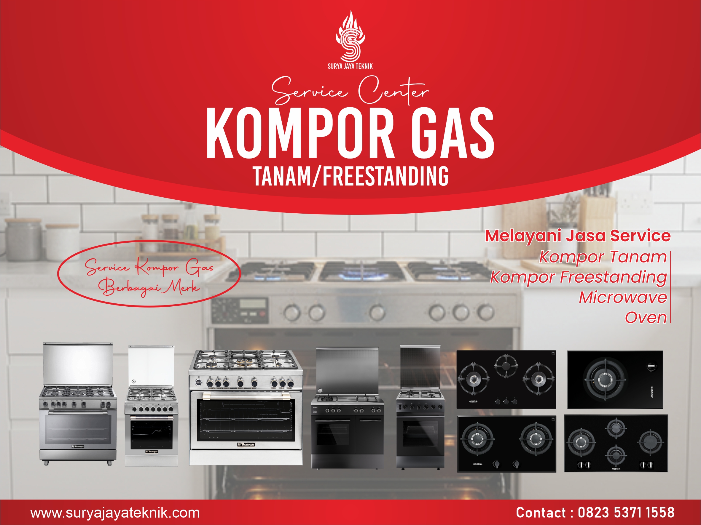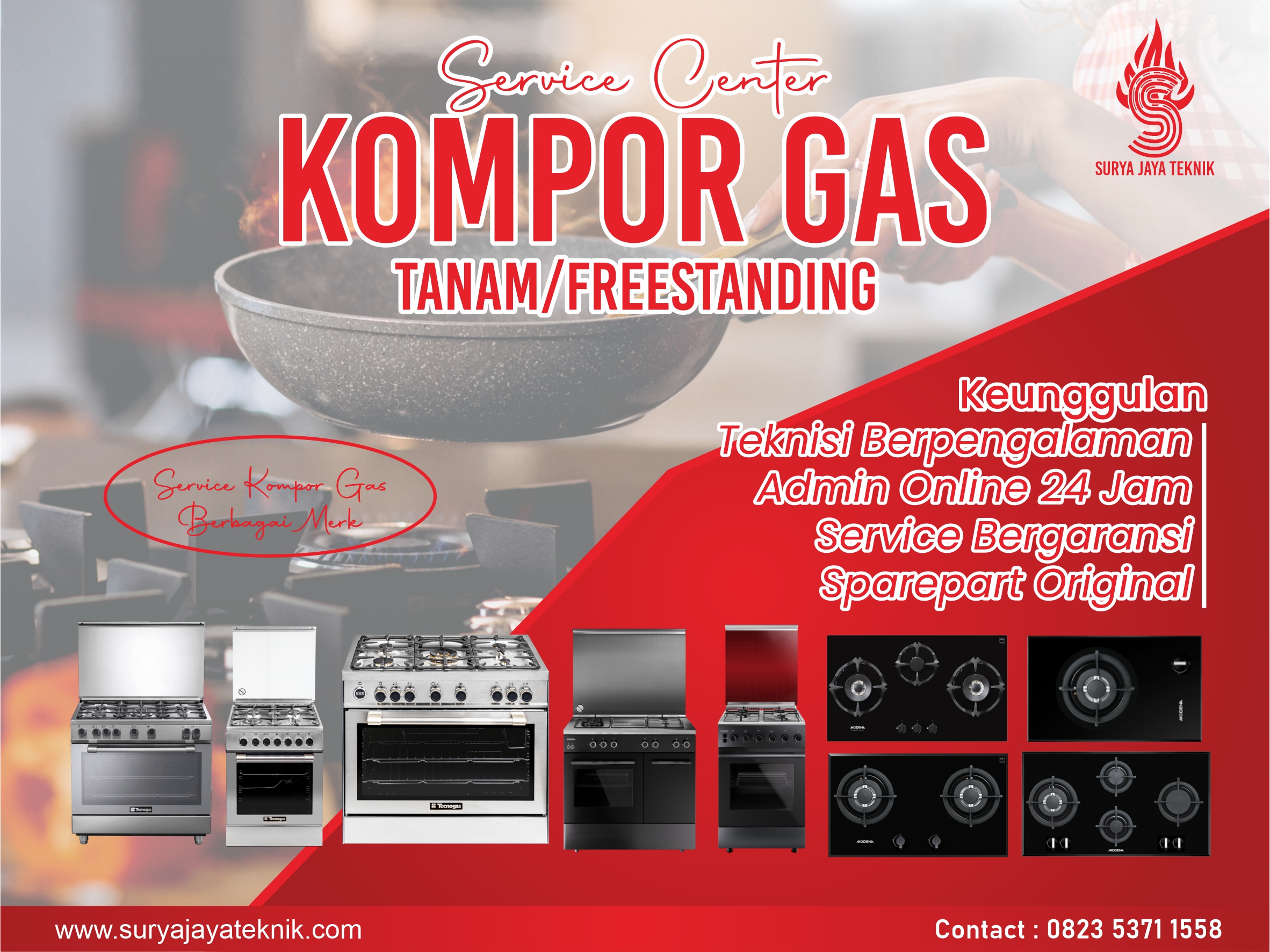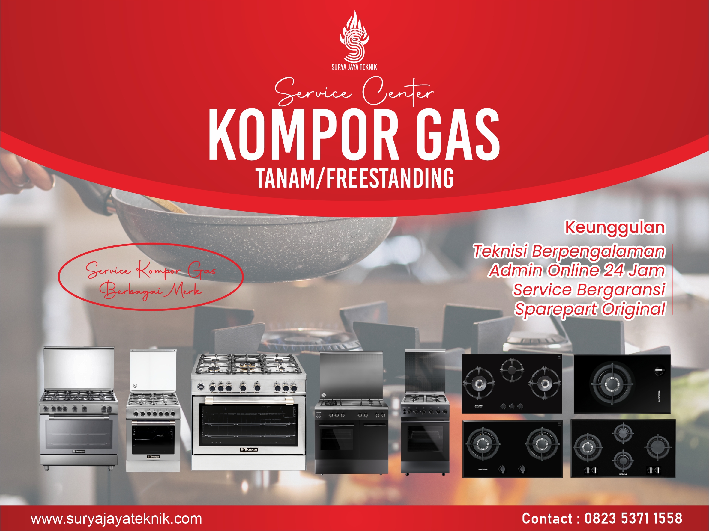 “Kompor ngadat? Api merah, bau gas, atau susah nyala? Panggil kami! Servis cepat, aman, bergaransi. Hubungi sekarang!”